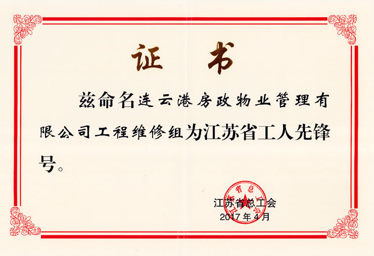 近日,房投集團權(quán)屬企業(yè)房政物業(yè)公司工程維修組在江蘇省總工會舉辦的“省工人先鋒號”評選中脫穎而出,榮獲“江蘇省工人先鋒號”稱號。