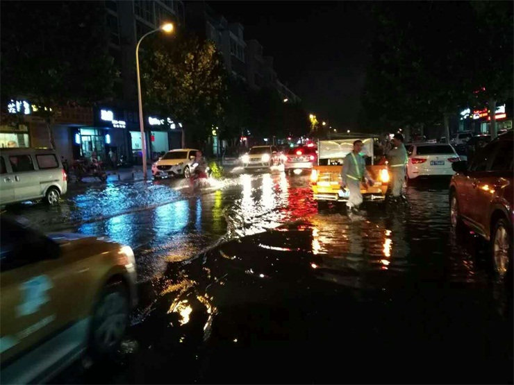 暴雨持續(xù)兩小時,城區(qū)降雨達(dá)到50毫米以上,連續(xù)的強降雨導(dǎo)致城區(qū)部分路面積水,尤其是巨龍路區(qū)域積水較為嚴(yán)重。接到上級部門的情況通報后,城市排水公司立即啟動防內(nèi)澇應(yīng)急預(yù)案,短短15分鐘,搶險小組攜帶著大功率搶險設(shè)備趕赴積水區(qū)域進(jìn)行強排處置。
