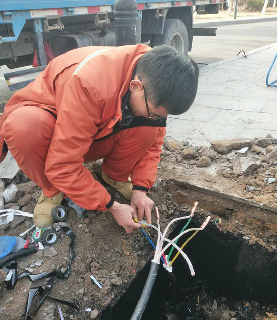 經(jīng)萬用表檢測發(fā)現(xiàn)故障電纜電流達(dá)到180A,不能再次送電,必須查找故障點(diǎn)。星辰照明安裝養(yǎng)護(hù)一所陸長禮班組立即去南城查找故障原因。瀛洲路的電纜井都是1*1米的大井,上面被種上了綠化,工作人員要刨開20多公分的綠化土然后三人才能掀開電纜井蓋,經(jīng)過幾個(gè)電纜井的檢測,確定故障在公交車站的站臺下面,這都是做公交車站站點(diǎn)時(shí)野蠻施工把路燈電纜弄傷了,也沒有處理,直接埋在土里,土里潮濕,時(shí)間久了形成短路。